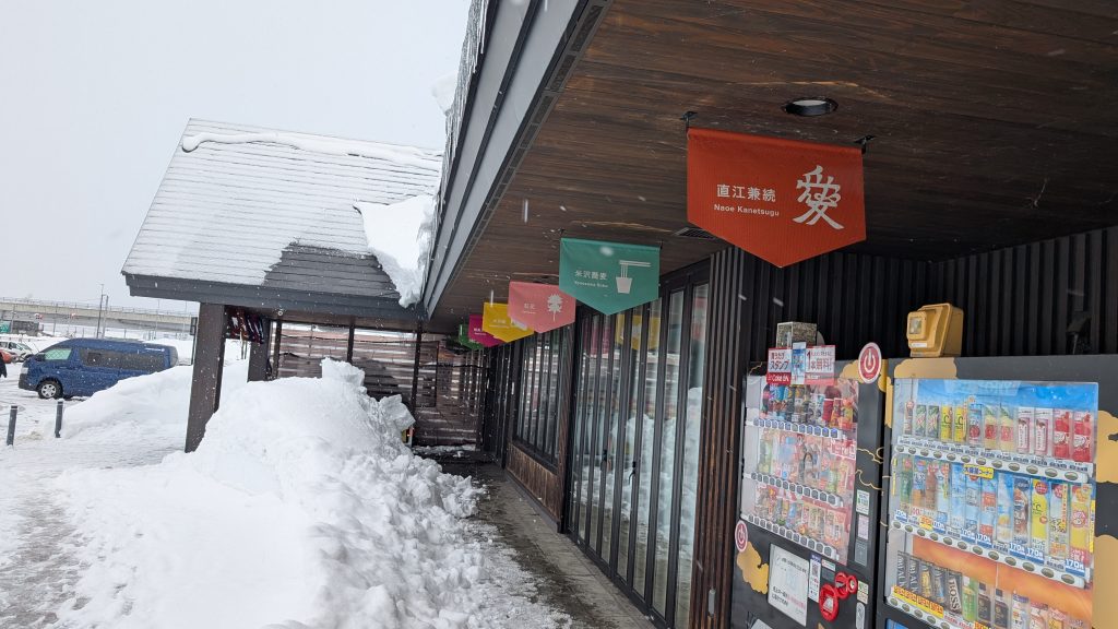 この暖簾のような幟(のぼり)はなんか良いですね。こうやって並べてみると木の色を基調とした建物と合っているし、特に直江兼続の「愛」が好きです。ただ直江兼続と言えば上杉景勝の側近だったはずだから、米沢よりも越後(新潟県)のイメージがあり、山形県で見るとは思わなかったです。(後で調べたら米沢城主だった)