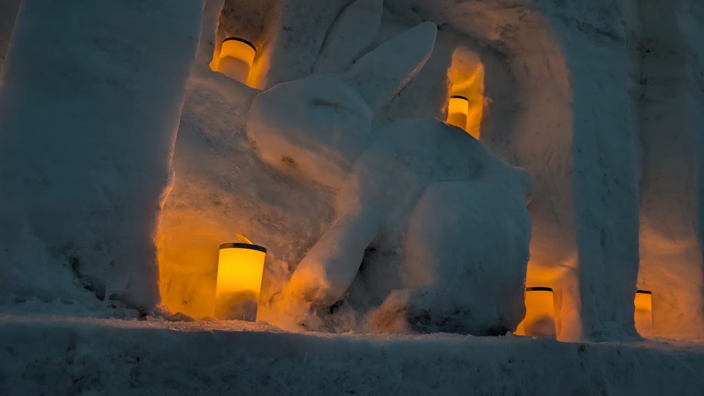 大きなヘビを模したと思われる雪像もそうですし、ちいさなウサギとかも凄いこだわりを感じます。なんというか本気でこのイベントで人を呼び込もうとしているのが伝わってきます。他のお客さんも去年から更にクオリティが上がったと言ってましたね。