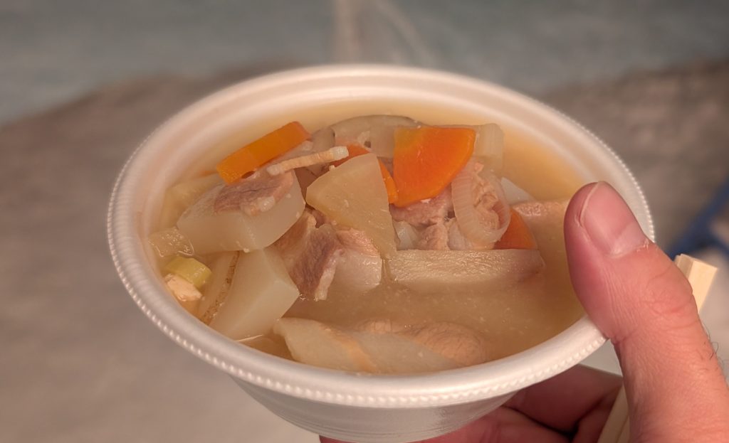 帰り際に豚汁を頂きましたが、濃いめの味噌と出汁が効いた熱々の豚汁は冷えた体温めてくれて最高でした。そう言えば、山形県といえば芋煮ですよね。一度食べてみたいものです。