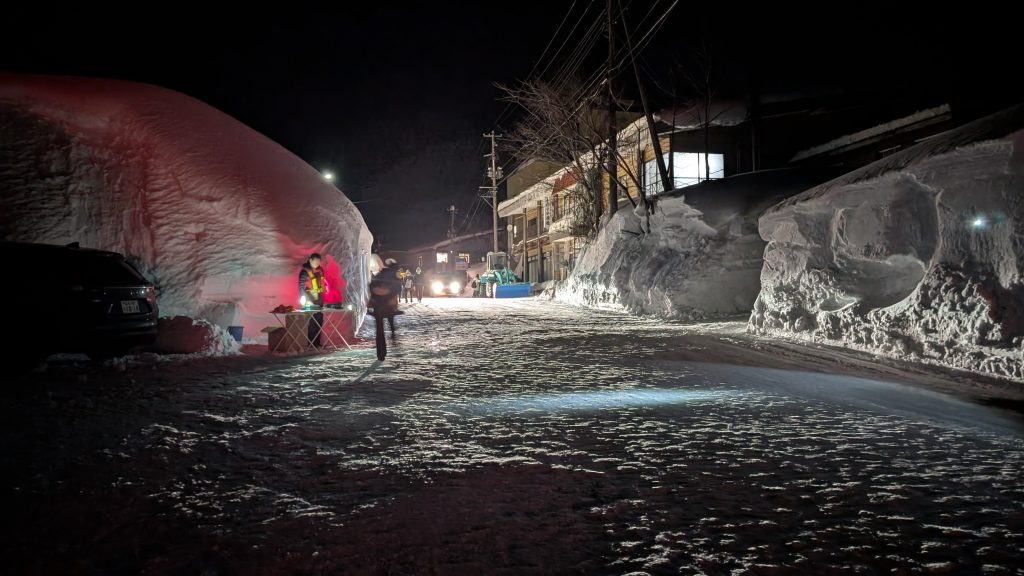 何がすごいって、まずこの雪の量ですよね。ちょうど画像の人だかりがある辺りで関係者の挨拶があったのですが、なんと隠れ積雪量日本一なんだとか。過去には8メートル近い積雪を記録したこともあるらしいです。お龍さんの故郷の宮崎県はもちろん、今住んでいる北関東でもこんな高さの雪は見ることは出来ないですね。