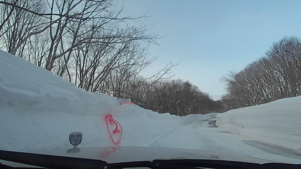 道中で撮った写真です。今回向かうのは更に雪深いところです。